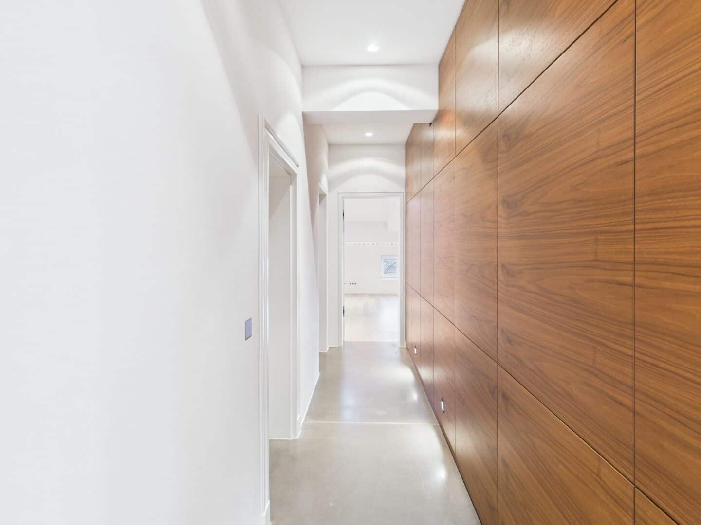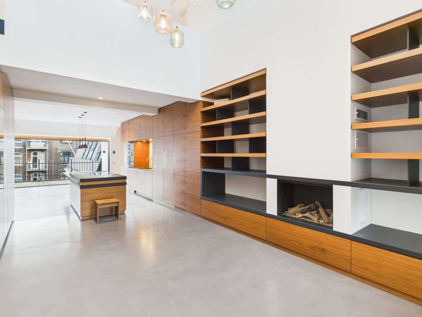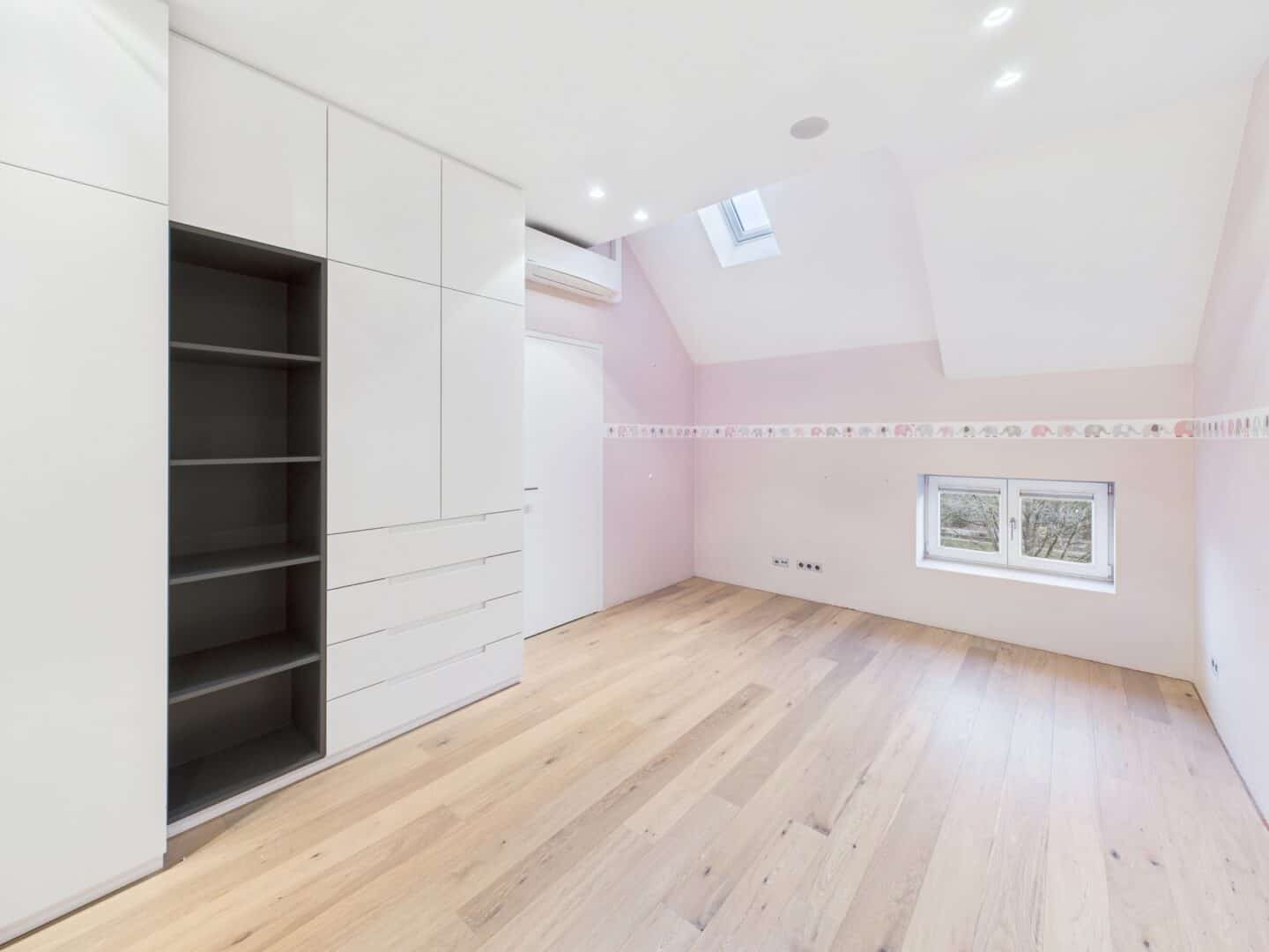 Die offene Gestaltung der Räumlichkeiten mit ihren hohen Decken schafft ein lichtdurchflutetes und weitläufiges Ambiente. Über das integrierte BUS-System (Gira KNX) lassen sich Beleuchtung, Multimediaausstattung (Unterputzlautsprecher, Basalte Musikserver), Heizung und Sonnenschutz steuern.