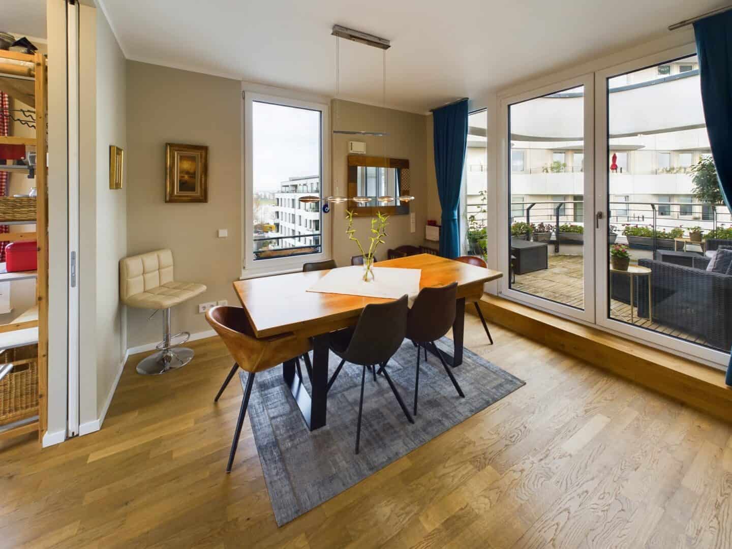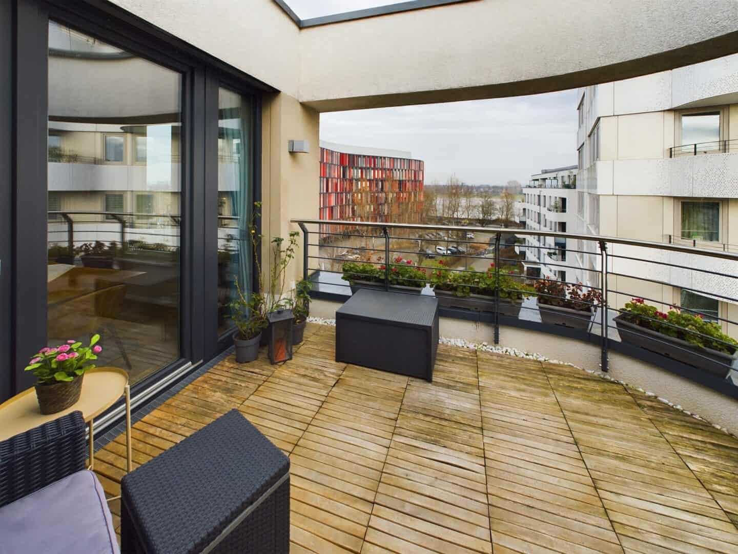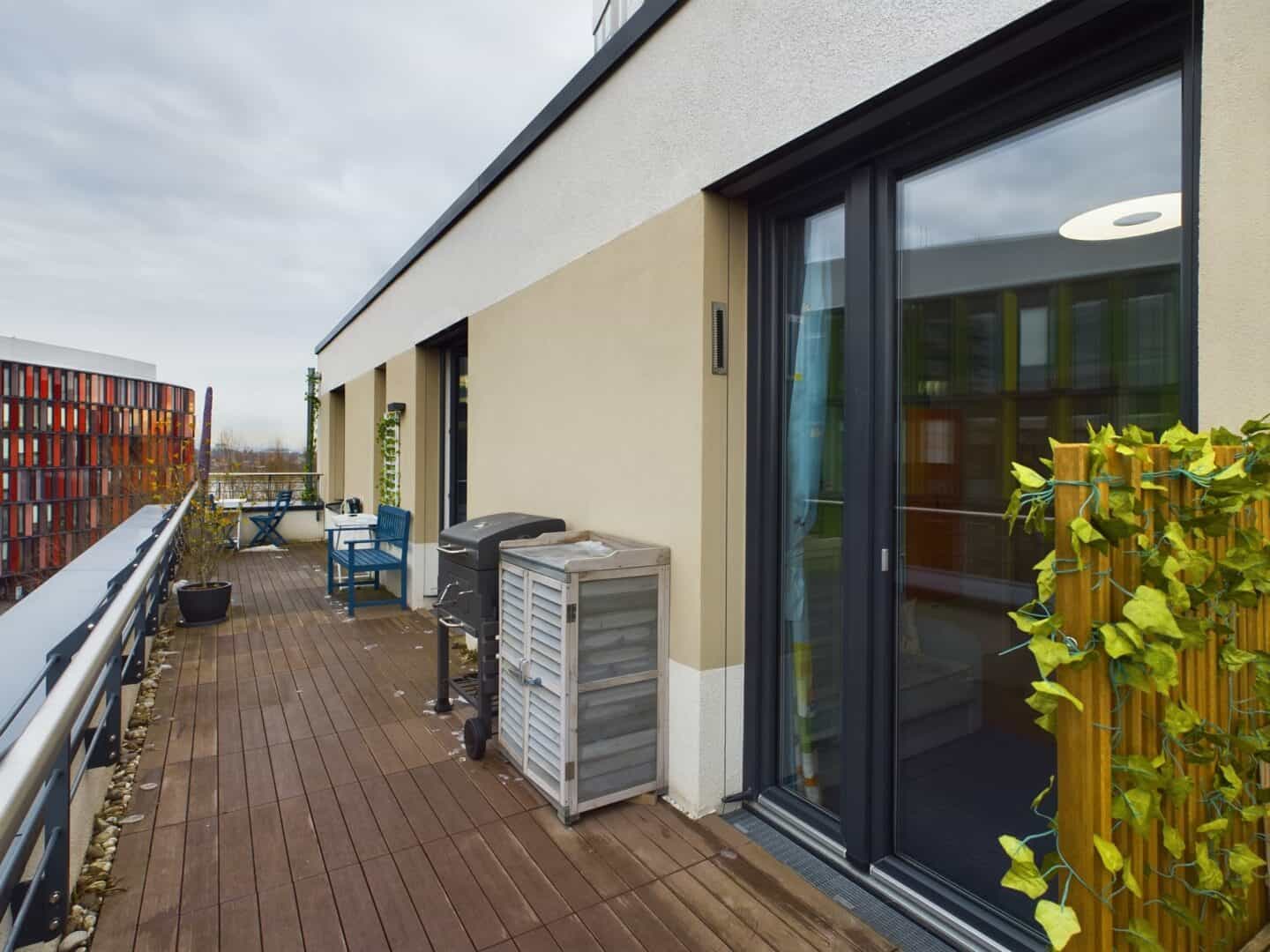 Das Highlight dieser Wohnung sind die zwei Dachterrassen mit Blick auf den Rhein. Ob ein Barbecue mit Freunden oder in Ruhe ein Buch in der Sonne lesen, hier können Sie Ihre Zeit in vollen Zügen genießen.