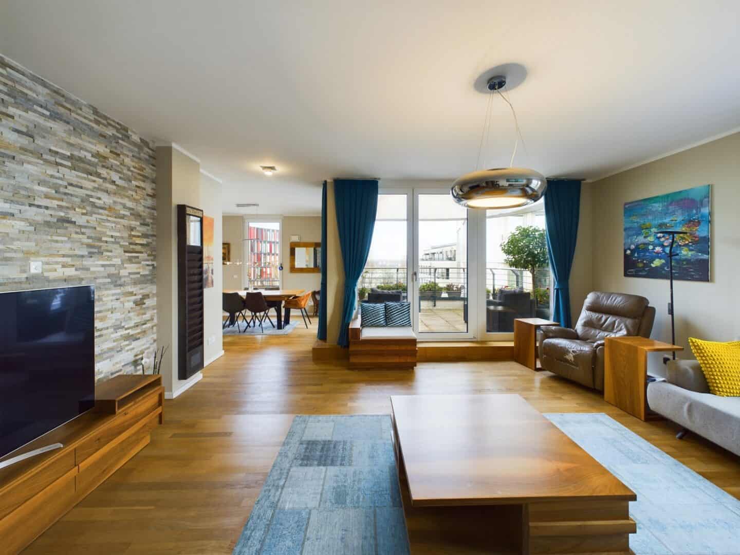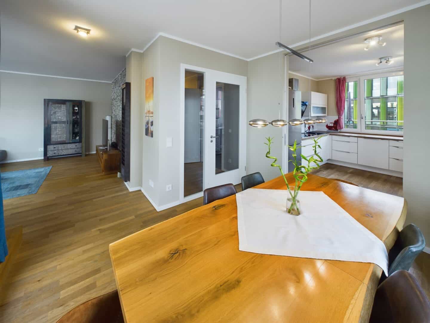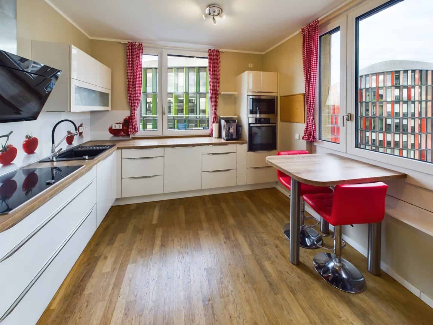 Das Highlight dieser Wohnung sind die zwei Dachterrassen mit Blick auf den Rhein. Ob ein Barbecue mit Freunden oder in Ruhe ein Buch in der Sonne lesen, hier können Sie Ihre Zeit in vollen Zügen genießen.